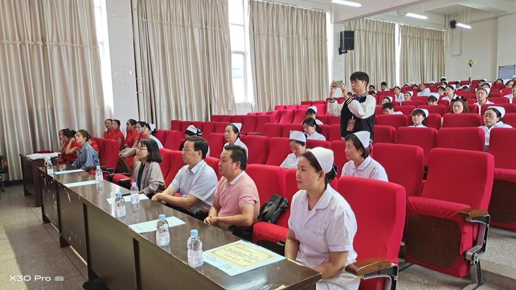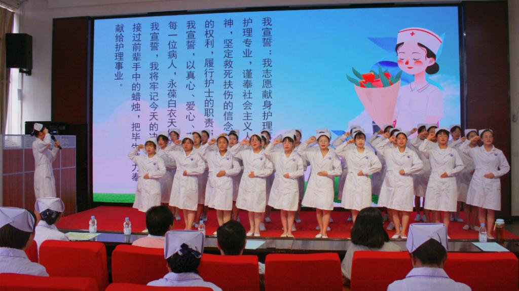 “我宣誓:我志愿献身护理事业,热爱护理专业,谨奉社会主义、人道主义精神,坚定救死扶伤的信念……”在一声声铿锵有力的誓言中,宣誓仪式结束,大会落下帷幕。