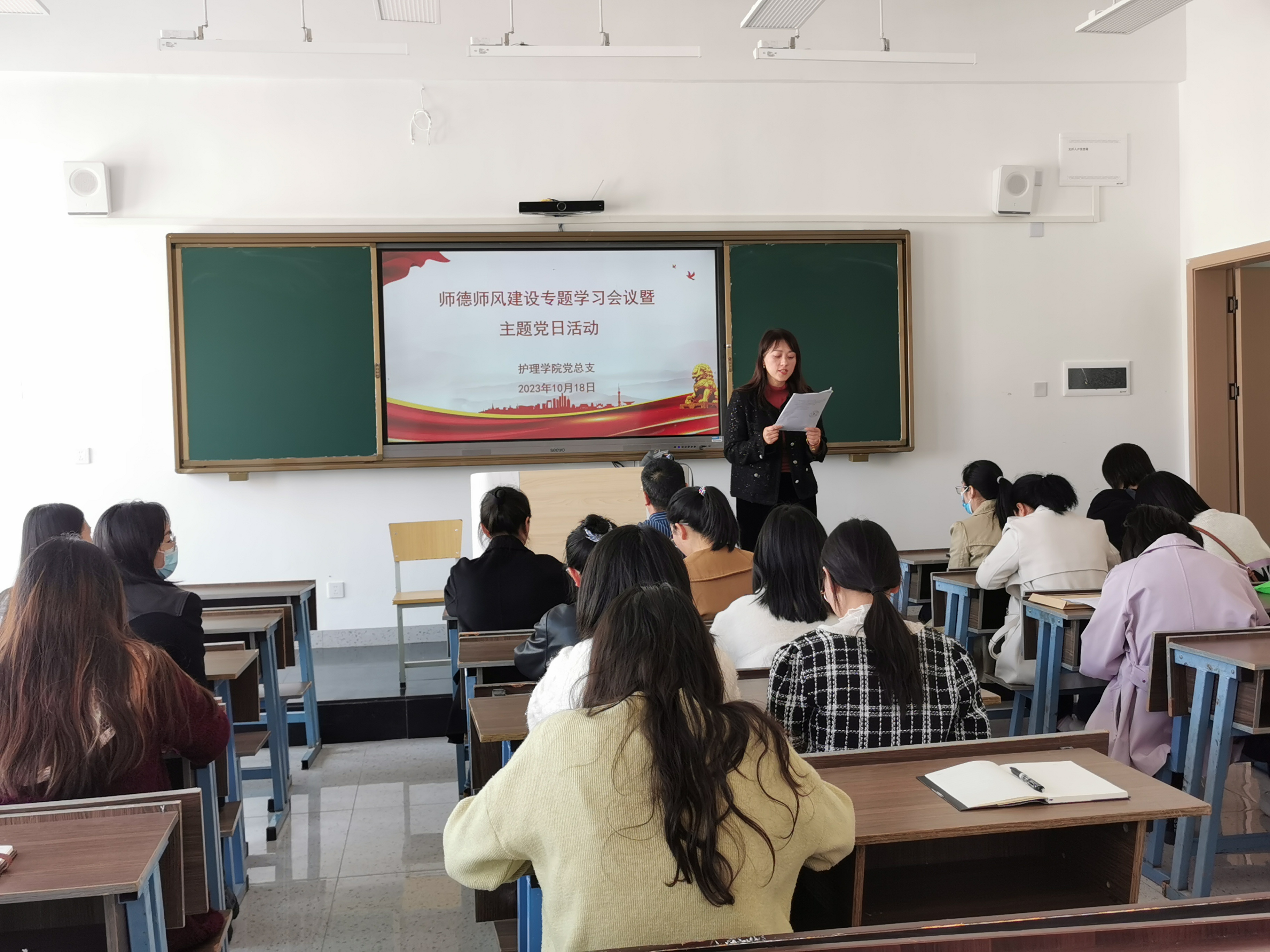 10月18日,护理学院党总支在志学楼402召开师德师风建设专题学习会议暨主题党日活动,学院全体教师参加会议。
