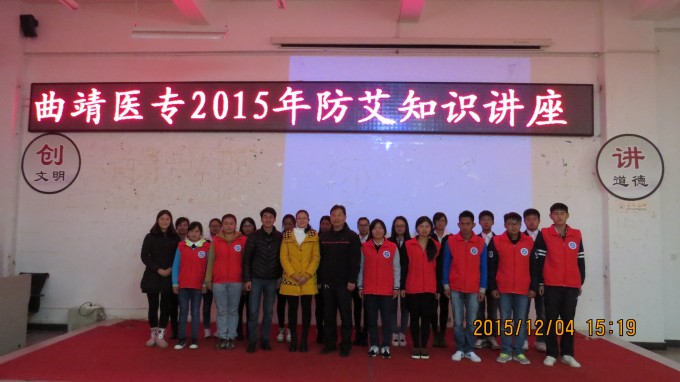 为使当代大学生对“艾滋”有更深刻、更全面的认识,并对其进行有效的预防。在学校团委的领导和支持下,在曲靖市麒麟区疾控中心老师的指导下,2015年12月4日下午,曲靖医专青年志愿者协会禁毒防艾分会“健康生活,预防做起”艾滋病预防专题知识讲座在典学楼报告厅隆重举行。受邀参加本次讲座的嘉宾有:曲靖市麒麟区疾控中心副主任李俊明老师,曲靖麒麟区疾控中心科室医生岳梦玉老师,校团委副书记李玥昊老师及校团委吴永春老师。