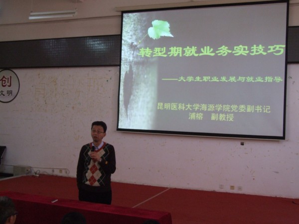 浦榕为曲靖医专学生作“转型期就业务实技巧”主题讲座