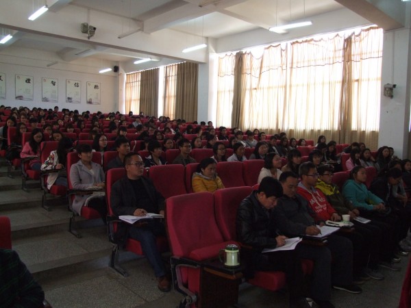 倾听讲座的校领导和学生