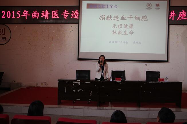 11月6日下午,我校团委特邀曲靖市红十字会黄琼院老师到校为学生举办造血干细胞捐献专题知识讲座。230余名来自各班的学生干部及学校青年志愿者参加了本次讲座,讲座由学校团委书记张磊老师主持。
