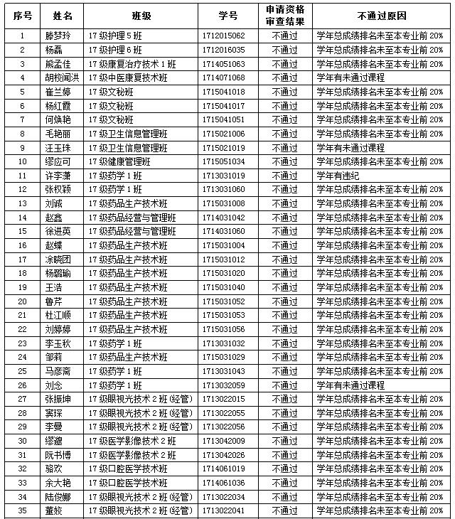 2017级普通三年制专科学生转专业申请资格审查不通过学生名单公示