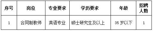 根据学校教学工作需要,经学校决定,本着公开、公正、公平的原则,现面向社会公开招聘合同制英语教师1人,公告如下: