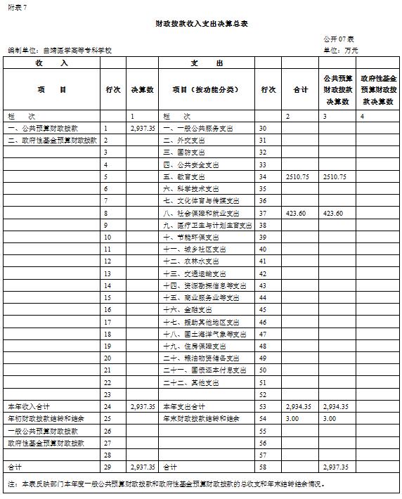 个表:①财政拨款收入支出决算总表(公开