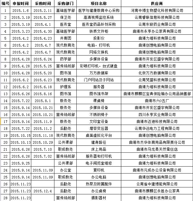 曲靖医学高等专科学校2015年度采购中标结果公告