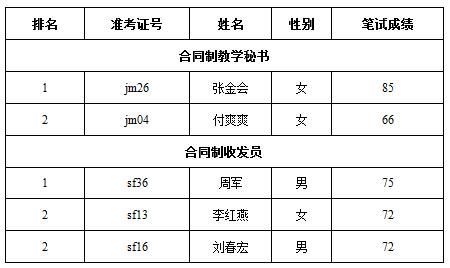 按照《曲靖医学高等专科学校公开招聘合同制教学秘书、收发员公告》及曲靖市人力资源与社会保障局相关规定,曲靖医学高等专科学校于2015年12月27日组织实施了笔试工作。根据笔试成绩排名按1:2比例进行面试。现将面试有关事项公告如下: