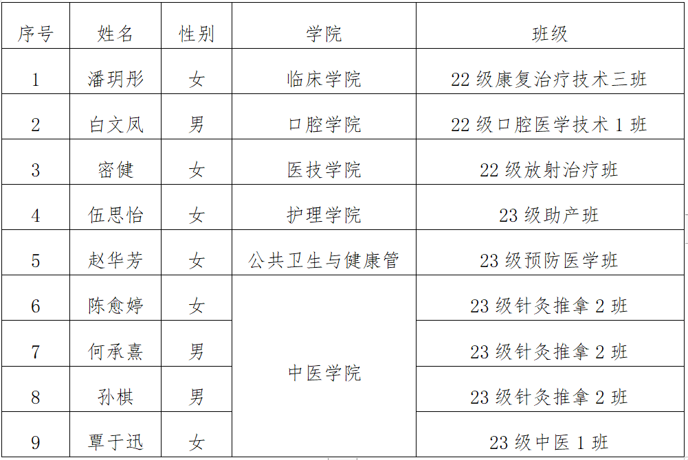 根据学校与泰国格乐大学签订的合作交流协议,赴泰国格乐大学交流生项目筛选工作基本结束。本着公开、公平、公正、择优录取的原则,经本人申请、院系推荐、综合考察,拟确定以下9名同学参加本项目,现予公示。名单如下: