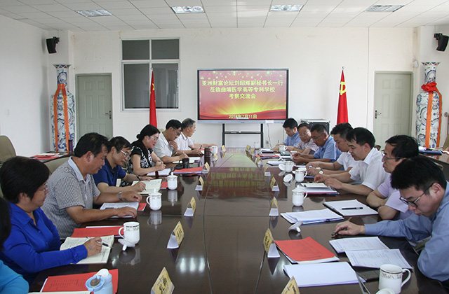 7月11日下午,在市招商合作局的陪同下,亚洲财富论坛刘昭辉副秘书长一行7人赴曲靖医专就新校区搬迁建设等合作事宜进行交流座谈。