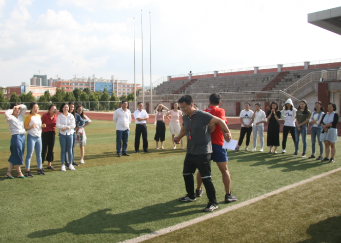 团队建设活动在学校体育场举行,团队建设活动旨在焕发工作热情、增强团队和协作意识,提升职业认知。在濮宏积老师和杨辉老师的指导下,新进职工很快融入到青春活泼的气氛中,通过“破冰团建”、“团结协作”、“奋起直追”三个主题的素质拓展活动,帮助新职员们增进彼此间的了解,建立同事情谊,更促使新进职工们加深了对曲靖医专的热爱。