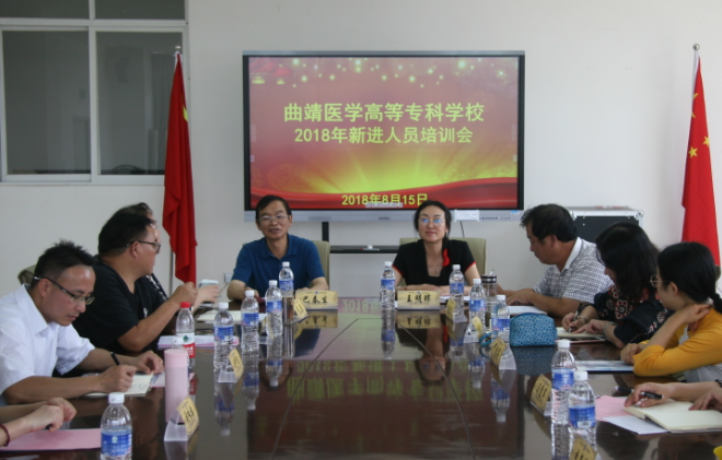 曲医八月,秋高气爽。恰逢建校60周年华诞之际,为做好新入职人员与岗位的对接,尽快转变角色融入学校集体,8月15日下午,学校举行了新入职人员培训会在崇德楼二楼会议室举行。出席本次会议的有:学校党委书记巴春生教授、校长王明琼教授、党委副书记徐金学同志、全体新进人员、组织人事处及各纳新部门负责人。
