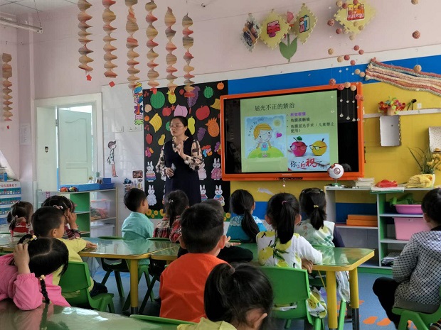 在医学技术系党总支书记尹华玲和副书记方杰的带领下,医技系全体教师党员、眼视光技术专业师生代表和青协志愿者深入开展以校内宣传为总动员,走进曲靖市第一幼儿园、曲靖英国牛津国际幼儿园、经开区高家屯小学、西山区养老院和曲靖市特殊教育学校进行“科学防控近视、关注孩子眼健康”系列主题宣传活动。