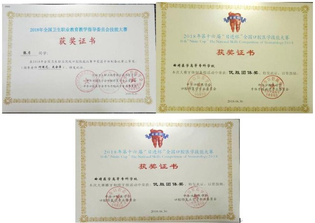 2018年6月30日,全国卫生职业院校口腔技能最高水平比赛——2018年全国卫生职业院校口腔技能大赛,第四届“黄炎培杯”暨第十六届“日进杯”全国口腔技能大赛如期在河南开封举行。曲靖医学高等专科学校口腔代表队首次参赛,经过激烈的竞争斩获大赛多项殊荣,受到评委和兄弟院校的好评。
