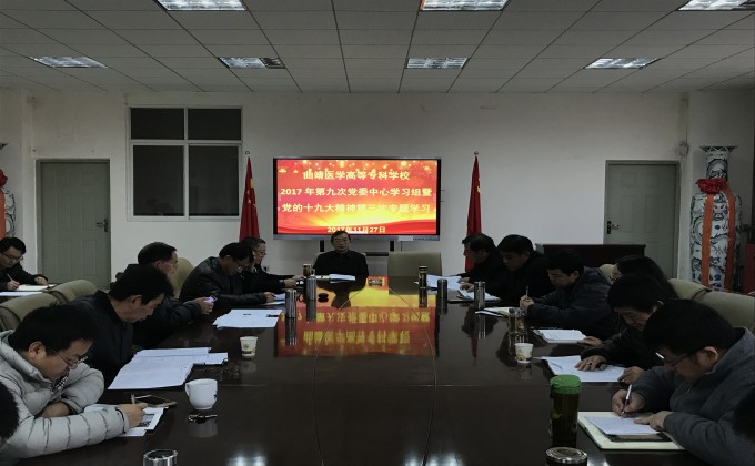 为了深入学习宣传贯彻党的十九大精神,2017年11月27日,曲靖医专召开第九次中心组暨党的十九大精神第三次专题学习,交流学习党的十九大报告。学校领导和副科级以上中层干部参加了会议。党委书记巴春生主持会议并讲话。