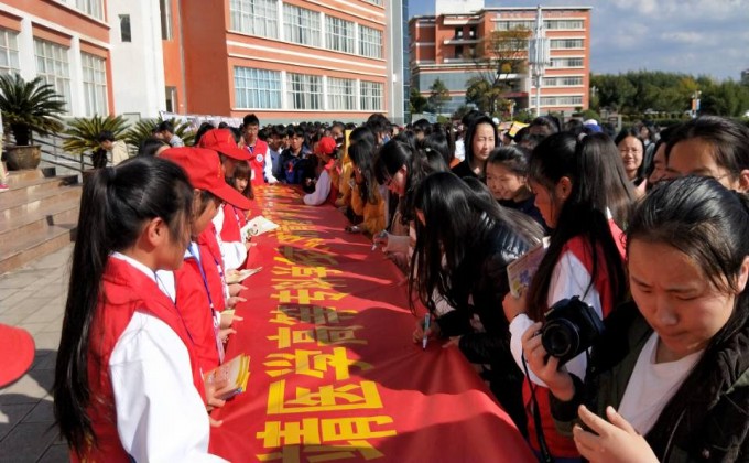 启动仪式结束后,志愿者带领同学们到图片展区了解艾滋病相关知识,并在主题横幅上自主签名。本次活动使广大青年学生更加熟悉和掌握艾滋病防治知识,充分认识艾滋病的危害,提高自我保护意识和防范能力,担起自己健康第一责任人的责任,积极投身防艾志愿者队伍。