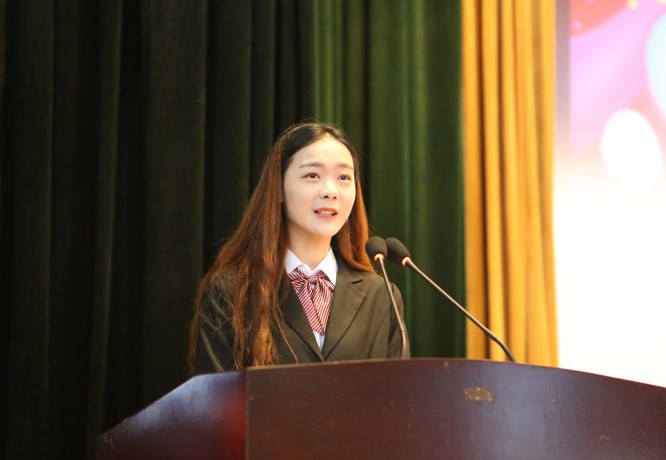 医技系2016级学生谭佳佳作为老生代表发言,分享了就读曲医一年来的真切感悟。
