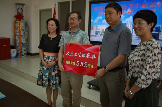 签约仪式后,人民卫生出版社向曲靖医专捐赠了价值5万元的图书。(雷蕾 图/文)
