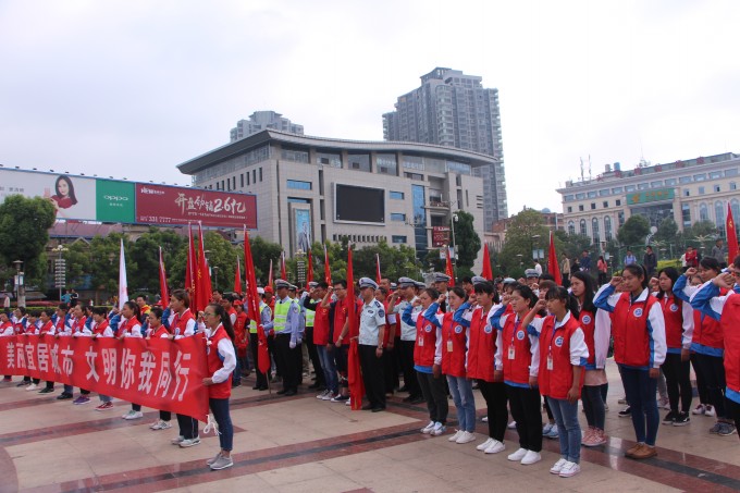 当日,曲靖市的主要街道、路口、人流密集的广场都活跃着曲靖医专青年志愿者的身影。