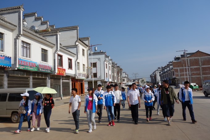 在思政部主任史祝云和思政部教师罗莉红、雷芸、代春燕、王家永、黄英的带领下,来自16级各班荣获学校2016-2017学年寒假实践活动优秀调查报告奖的学生代表,首先参观了罗平县美丽家园建设示范点小洲子村,该村2014年被列为罗平县“美丽宜居乡村”建设示范点,村民在上级部门的帮助下,自筹大部分建设资金,家家户户建起了三层小洋楼,村委会建起了村民活动室、休息凉亭,硬化了道路,房前屋后栽种了树木、花草,村民过上了殷实的生活。我校师生在以德村委会会听取了村干部和学校扶贫驻村工作队队长左祥老师对以德村经济发展和扶贫工作情况的介绍,在村干部带领下,走访了部分贫困户,参观了村文化活动室建设,对以德村经济社会发展和扶贫工作有了全面了解。我校师生在返回途中,实地参观了阿岗镇岗德扶贫异地搬迁项目建设情况。本次实践教育活动加深了我校师生对农村经济社会发展和扶贫工作的认识,提高了培育和践行社会主义核心价值观的主动性和自觉性。