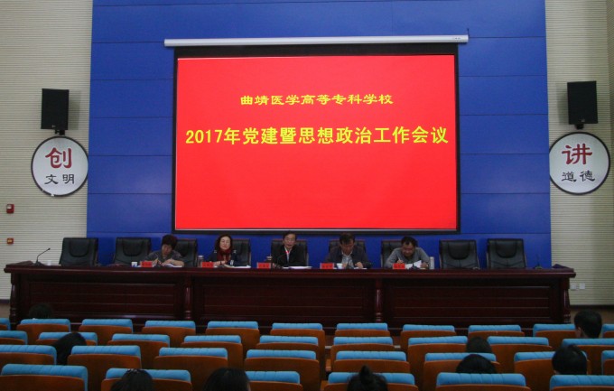 学习贯彻习近平总书记系列重要讲话精神和治国理政新理念新思路新战略,进一步贯彻落实全国全省党建、宣传思想和高校思想政治工作会议精神,进一步加强和改进新形势下学校党建和思想政治工作,曲靖医学高等专科学校党建暨思想政治工作会议于5月19日下午在学校图书馆报告厅召开。全体校领导出席会议,全体党委委员、中层干部,全体党员参加会议。