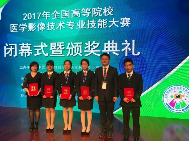 2017年4月23-26日,在上海市,全国高等院校医学影像技术专业实践技能大赛隆重开赛!在这百花争妍的美好春光里,全国58所本、专科高等院校齐聚于上海健康医学院展开激烈角逐,赛事共设四个单项,医学影像技术专业2014级彭庆连同学荣获超声检查技术单项一等奖,2015级高世芬同学荣获数字X线摄影技术单项一等奖,2014级聂学江同学荣获CT检查技术单项二等奖,2014级罗琴同学荣获医学影像诊断单项三等奖,凭借优异的单项成绩积分,我校继2016年之后,连续两年荣获全国“团体一等奖”,并授予2017年全国高等院校医学影像技术专业技能大赛“优秀组织奖”;其中黄晓云、崔蕊2名教师,荣获“优秀指导教师奖”。