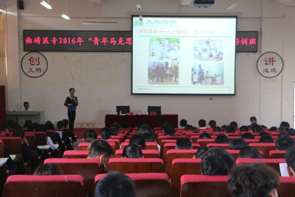 为进一步推进文明校园建设工作,切实提高学生干部队伍的整体素质和服务学生的水平,以点带面,提升全校师生的文明修养。10月20日下午,曲靖医学高等专科学校以迎校庆、迎评估为契机,组织开展了“礼行天下,仪美曲医”大学生礼仪修养提升讲座暨2016年“青马工程”团学骨干培训班第二期。学校团委书记张磊主持培训活动,特邀曲靖市文熙职业培训学校校长、高级讲师何煦授课,全体“青马工程”培训班学员共240余人参加培训。