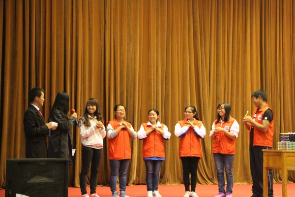 第五环节,“小小牙齿用处大,吃饭说话都用它,吃过食物漱漱口,早晚记住把牙刷,天天用它要爱护,少生病来健康佳。”更有口腔医学技术班的同学展示了口腔的模型,搞怪全场,使人乐不停!