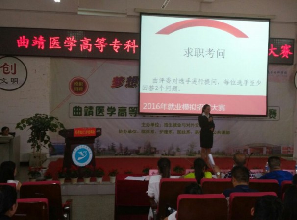 参加进入决赛的9名选手,是从班级、系部比赛中层层选拔出来的的,比赛分求职简历展示、个人自我介绍、求职考问3个环节进行。药学系获得优秀组织奖,医学技术系14级检验技术二班的张静同学夺得第一名,选手们在台上灵活应变、沉着应战的精彩表现和扎实丰富的专业知识功底,令人倍受启发,迎得了台下同学的阵阵掌声,此次比赛为全校同学提供了一次难得的求职前模拟面试的过程展示。