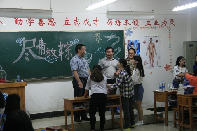 正值端午佳节,远离家乡的曲医学子,在学校的组织下欢聚在教室。阵阵欢声笑语,将整个学校点撒上了浓郁的节日气息和温暖。学校党委副书记徐金学、纪委书记桂发权、校长助理招生就业处处长雍怡敏分别代表学校向学生们送来了温暖的节日祝福,并对广大同学寄予了学习与生活上的深切期望。关切的话语,深厚的关怀,为同学们的端午佳节带来了最为温情的时刻。