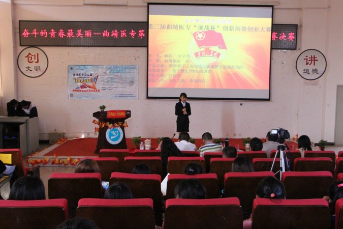 为促进大学生的“创意,创业,实践”全面发展,激发大学生创新思维,全面提高我校学生综合素质。同时,也为广大青年学生提供一个参与科技创新的平台,充分展示学生创意创新风采,营造良好的校园文化氛围。4月19日下午,曲靖医专第三届“挑战杯”创新创效创业大赛决赛终审答辩会于典学楼报告厅隆重举行。本次决赛由校团委主办,特邀科研处处长李金生、学生处副处长乔艳永、招就处副处长唐卫华、药学系党总支书记王小庆及宣传统战部副部长周崟担任评委。护理系主任王所荣、基础医学系主任晏廷亮、医学技术系主任尹华玲、药学系主任张慧颖、校团委书记张磊、副书记王良玉、参赛作品指导老师及参加决赛团队代表、各系同学共260余人参加了答辩会。