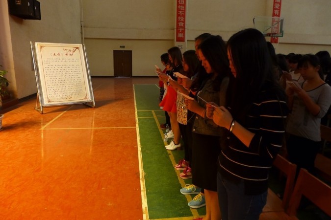 到场师生共同诵读了国学经典《大学》,学校党委书记荀传美宣布读书节开幕。