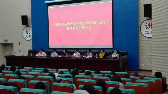 2016年3月24日晚7点在曲靖医学高等专科学校图书馆报告厅举行2016届护理专业学生赴深圳实习报告会。2015年3月护理基础党总支经过四次动员,同学们经历了一段时间的纠结,最终从报名的20余名同学中推荐出6名最优秀的同学到深圳市第三人民医院实习,她们不负众望,通过笔试、操作考试、医院外请专家的面试,全部留在深圳市第三人民医院工作。实现了护理系学生出省就业零的突破,同时也给深圳市第三人民医院的医护人员留下了良好印象。她们用自己的现身说法,鼓励14级同学,利用学校为大家搭建的这一平台,走出去开阔自己的眼界,实现自己的理想。