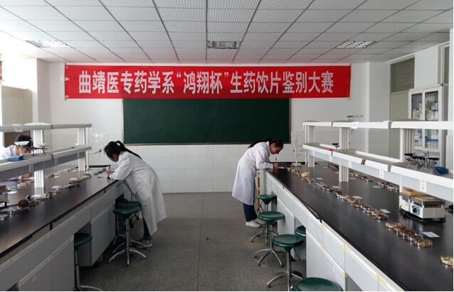 2016年3月4日,曲靖医专首届“鸿翔杯”生药饮片鉴别大赛决赛场上,10名同学展开了一、二、三等奖的角逐。13分钟内,完成40种生药饮片的辨识,写出正确名称和功效,可谓是争分夺秒。10位选手准备充分,在比赛中均有不俗表现。经裁判评定,最终2名同学荣获一等奖,3名同学荣获二等奖,5名同学荣获三等奖。