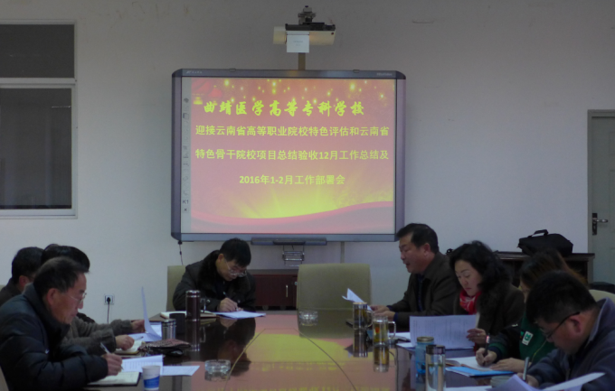 1月4日上午,学校特色评估和特色骨干院校建设工作领导小组召开会议,对学校迎接云南省特色评估和云南省特色骨干院校验收工作12月计划实施情况进行总结,并对2016年1-2月工作进行安排部署。会议由学校党委副书记徐金学主持。