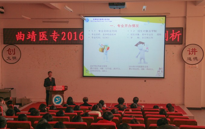 1月21日,曲靖医专2016年专业剖析汇报比赛在典学楼报告厅举行。学校聘请云南交通职业技术学院教务处处长晏彬、昆明卫生职业学院护理学院原则蒋淑坤、云南林业职业学院经济管理学院院长刘丽芳、云南能源职业技术学院教务处处长季春和督导处处长赵江作专家评委。比赛活动由教务处处长许建新、教务处副处长杨春菊主持。