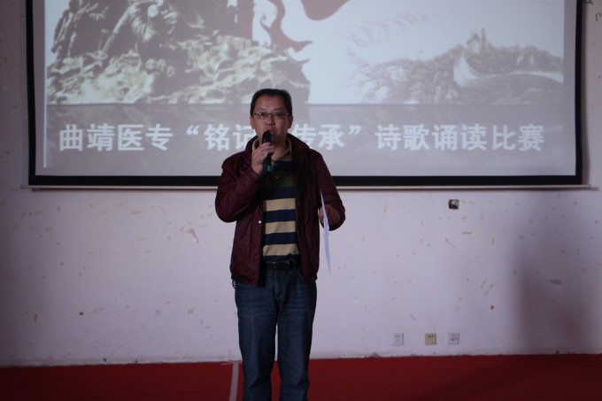 最后,学生处副处长倖涛为大赛作点评和总结。此次比赛的成功举办,丰富了曲医学子的校园文化生活,通过选手们热情饱满的个人诵读、抑扬顿挫的集体诵读,带领在场观众共同回顾了那段可歌可泣的抗战血史,并以此纪念中国人民抗日战争暨世界反法西斯战争胜利70周年,以此激励今天的青年学子们努力践行中国梦,书写壮丽的青春篇章,为中华民族的伟大复兴努力奋斗。