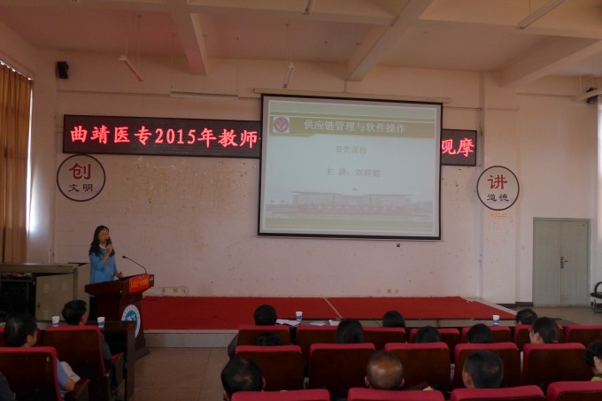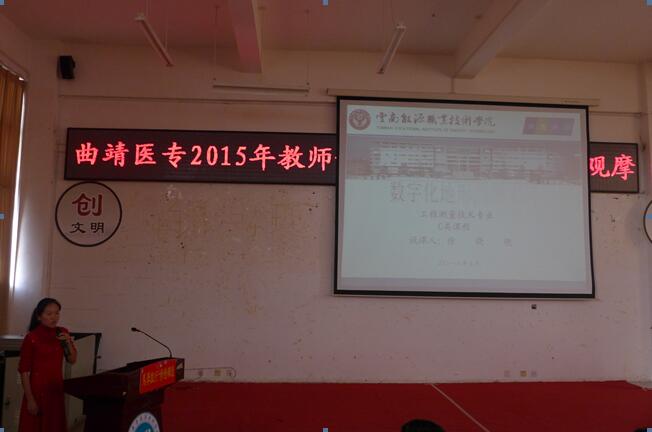 本次观摩活动特别邀请了云南能源职业技术学院三位双师素质骨干教师为我校教职员工进行系统性的教学技能展示,旨在通过对专业剖析、说课的现场观摩,加深对评建指标的理解,引领全校的专业剖析和说课的有效开展。首先,机械与电气工程学院机械教研室主任、矿山机械专业带头人钱红向与会者做了《矿山机电专业剖析》报告。接着,资源与环境工程学院工程测量技术专业带头人徐晓艳老师做了C类课程《数字化地形测图实习》现场说课,经济与工商管理系物流管理专业带头人刘莉娟老师做了B类课程《供应链管理与软件操作》现场说课。三位老师制作的PPT精美简洁,剖析说课重点突出,赢得与会者一致好评。