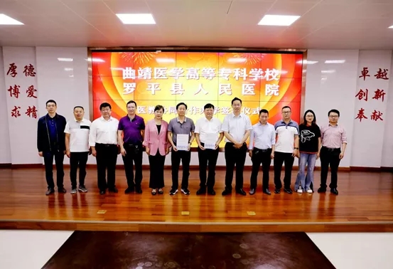 为不断深化医教协同、推进医学教育改革与发展,5月19日,曲靖医学高等专科学校党委书记余祖林、副校长陈正权及临床学院、护理学院领导一行赴罗平县人民医院签订医教协同合作办学协议。罗平县人民政府副县长王冬梅、罗平县卫生健康党工委书记、卫健局党组书记、局长吴彦国及罗平县人民医院中层及以上领导干部出席签约仪式。