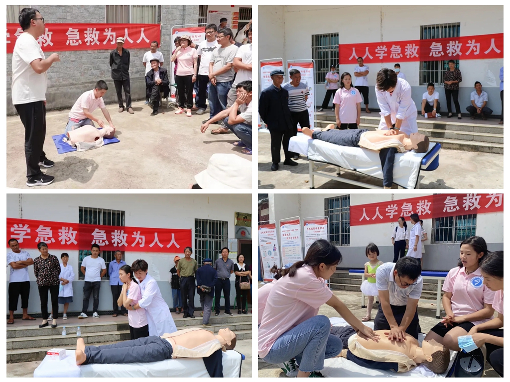 曲靖医专健康教育宣讲团成员为以德社区居民和阿者村民开展急救知识培训,现场讲解和演示了心肺复苏急救术和海姆立克急救法,并鼓励村民进行尝试,指导他们规范动作以及用力技巧等,切实提升意外伤害防范意识,使村民掌握基本应急救护知识和技能,以确保在意外伤害发生时能及时、正确地自救互救。