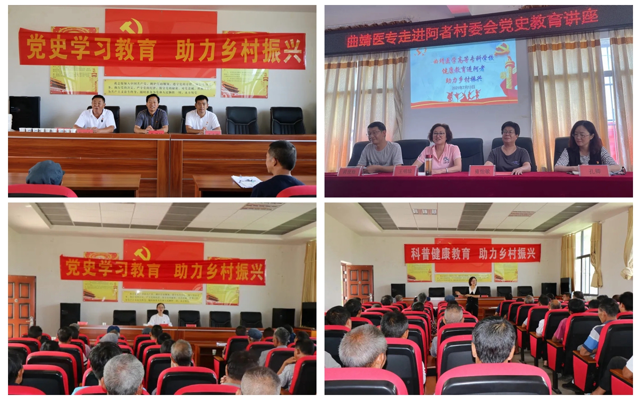 曲靖医专坚持以习近平新时代中国特色社会主义思想为指引,聚焦学史明理、学史增信、学史崇德、学史力行,把学习党史同推动学校实际工作相结合,牢记党的使命和根本宗旨,充分依托学校现有高质量教师队伍资源,积极调动中共党员、民主党派教师参与活动的主动性,坚持新发展理念,深入贯彻习近平总书记关于“健康中国”建设系列论述,将“我为群众办实事”实践活动与服务乡村振兴战略紧密结合起来,发挥学校健康教育优势,普及健康知识,调查了解乡村医疗卫生发展状况,精准化医疗下乡服务内容,为地方医疗卫生健康事业发展贡献力量。据悉,此次健康教育助力乡村健康振兴活动是曲靖医专健康教育宣讲团成立的第一次活动,是巩固脱贫攻坚成果、助力乡村振兴的有力举措。