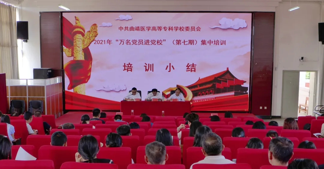 2021年7月12日,曲靖医学高等专科学校“万名党员进党校”(第七期)集中培训工作圆满落幕,本期培训历时3天,采取专题辅导、现场教学、党史学习教育读书班、视频教学等多种形式,将党的十九届五中全会精神和党史学习教育作为必修课程,重点学习贯彻习近平总书记在庆祝中国共产党成立100周年大会上重要讲话精神,突出《中国共产党章程》等党内法规学习教育。培训邀请了校内外专家分别作了《学习贯彻习近平总书记在庆祝中国共产党成立100周年大会上重要讲话精神》《回眸党的光辉历程 践行党的初心使命》《改革开放——改变中国,影响世界》《学习贯彻习近平新时代中国特色社会主义思想和考察云南重要讲话精神》《危机中育先机,变局中开新局——十九届五中全会精神解读》等专题辅导。专题辅导论述透彻,观点新颖、内容丰富,既有理论高度、思想深度,又有很强的实践性、指导性。
