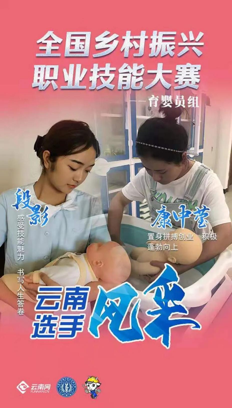9月26日,由人力资源和社会保障部、国家乡村振兴局、新疆维吾尔自治区人民政府主办的全国乡村振兴职业技能大赛在新疆乌鲁木齐市国际会展中心正式开赛。云南省按照国家赛事标准经过州(市)初赛、省级决赛、集训晋级,选拔出22名优秀选手参加本次大赛,其中我校护理学院2019级助产专业段影同学被选拔为“育婴员”项目参赛选手参与国赛角逐。