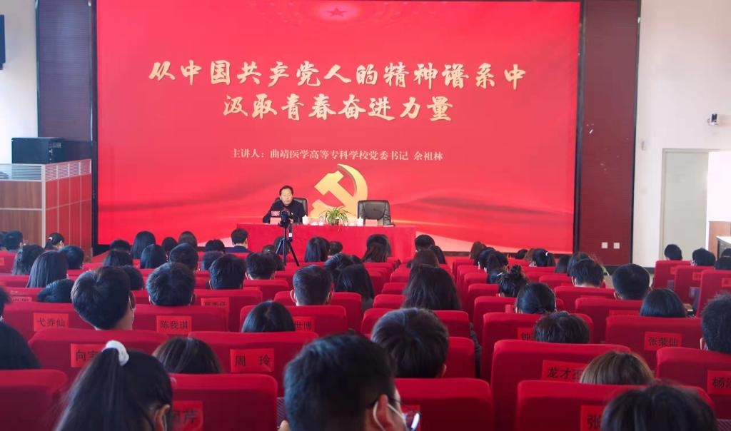 为深入学习贯彻党的十九届六中全会精神,在广大青年学子中着力培养一批“政治坚定、德才兼备、素质全面、模范表率、堪当重任”的青年马克思主义者。11月19日下午,曲靖医学高等专科学校2021年“青马工程”团学干部培训暨第十期团校培训班在典学楼418报告厅顺利开班。学校党委书记余祖林出席开班仪式,为全体“青马班”学员作动员讲话,并作了一场题为《从中国共产党人的精神谱系中汲取青春奋进力量》的专题讲座,讲座由学校党委副书记桂发权主持,学生处、团委负责人,各学院团总支负责人、辅导员与本期“青马班”240余名学员共同聆听授课。