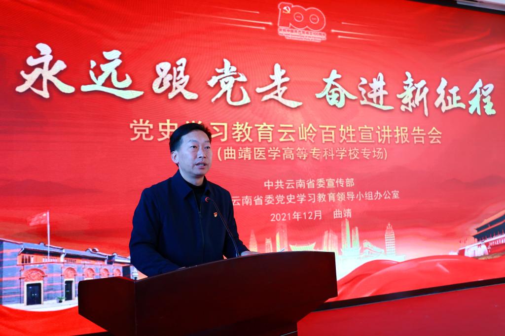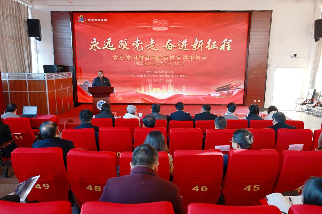 12月16日,由省委宣传部、省委党史学习教育领导小组办公室主办的“永远跟党走·奋进新征程”云岭百姓宣讲团深入我校开展宣讲活动,宣讲团用身边人、身边事,讲述动人的红色故事,传播了云南红色历史文化,赓续精神血脉,激发了奋进力量。