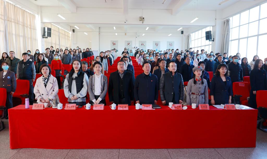 省委党史学习教育领导小组办公室实践活动组副组长周忠明、省委党史学习教育领导小组办公室工作人员田云辉、市委宣传部讲师团尤晓筱、学校领导班子成员出席宣讲报告会。学校中层干部、师生代表120余人到场聆听了宣讲。宣讲活动由我校党委委员、宣传部部长杨卫东主持。