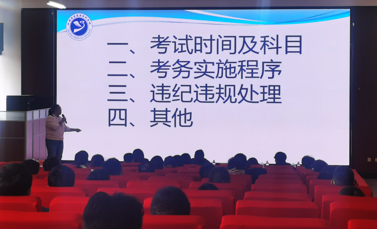 为更好落实新冠疫情防控,保障广大考生、考试工作人员的生命安全及国家教育考试安全有序组织,确保考试工作顺利进行,4月8日下午学校在典学楼418报告厅召开专升本招生考试考务工作培训会。云南能源职业技术学院领导、学校领导、考务人员、监考教师参加了考务会。会议由教务处主持。