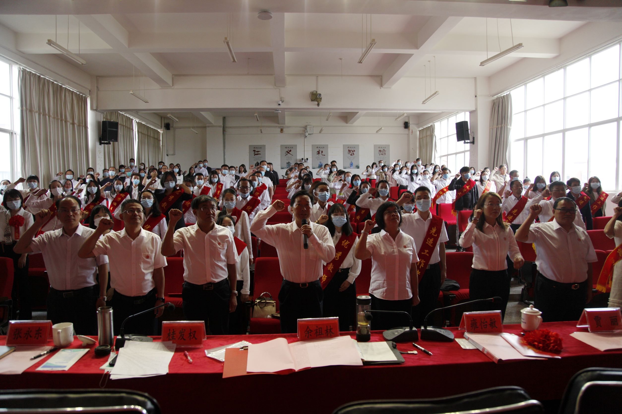 为庆祝我国第38个教师节,9月9日下午学校组织开展教师节庆祝活动。学校领导班子成员出席活动,学校党委副书记桂发权主持活动。学校全体教职工严格按照疫情防控要求,分别在主会场和分会场参加活动。