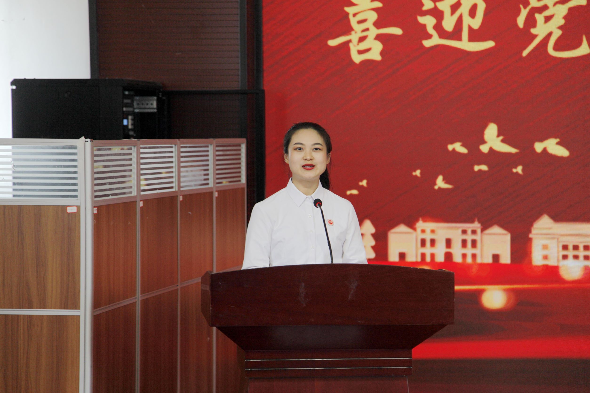 (新入职教师代表杨锐发言)