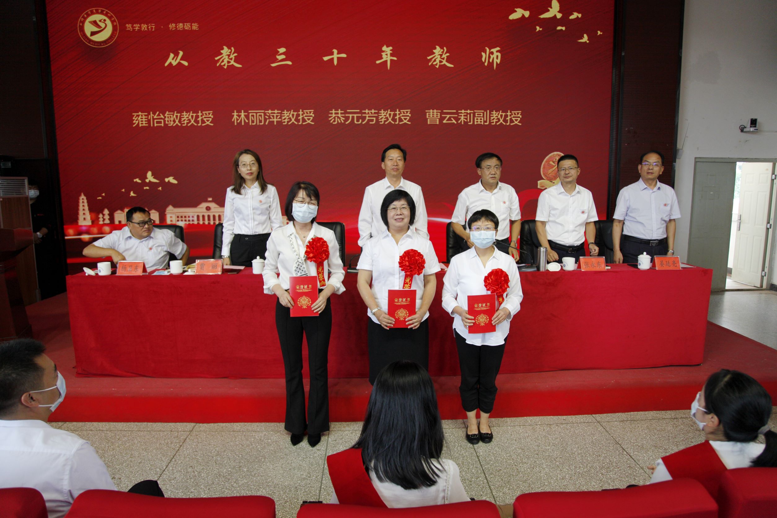 (领导为从教30年教师代表颁发荣誉证书)