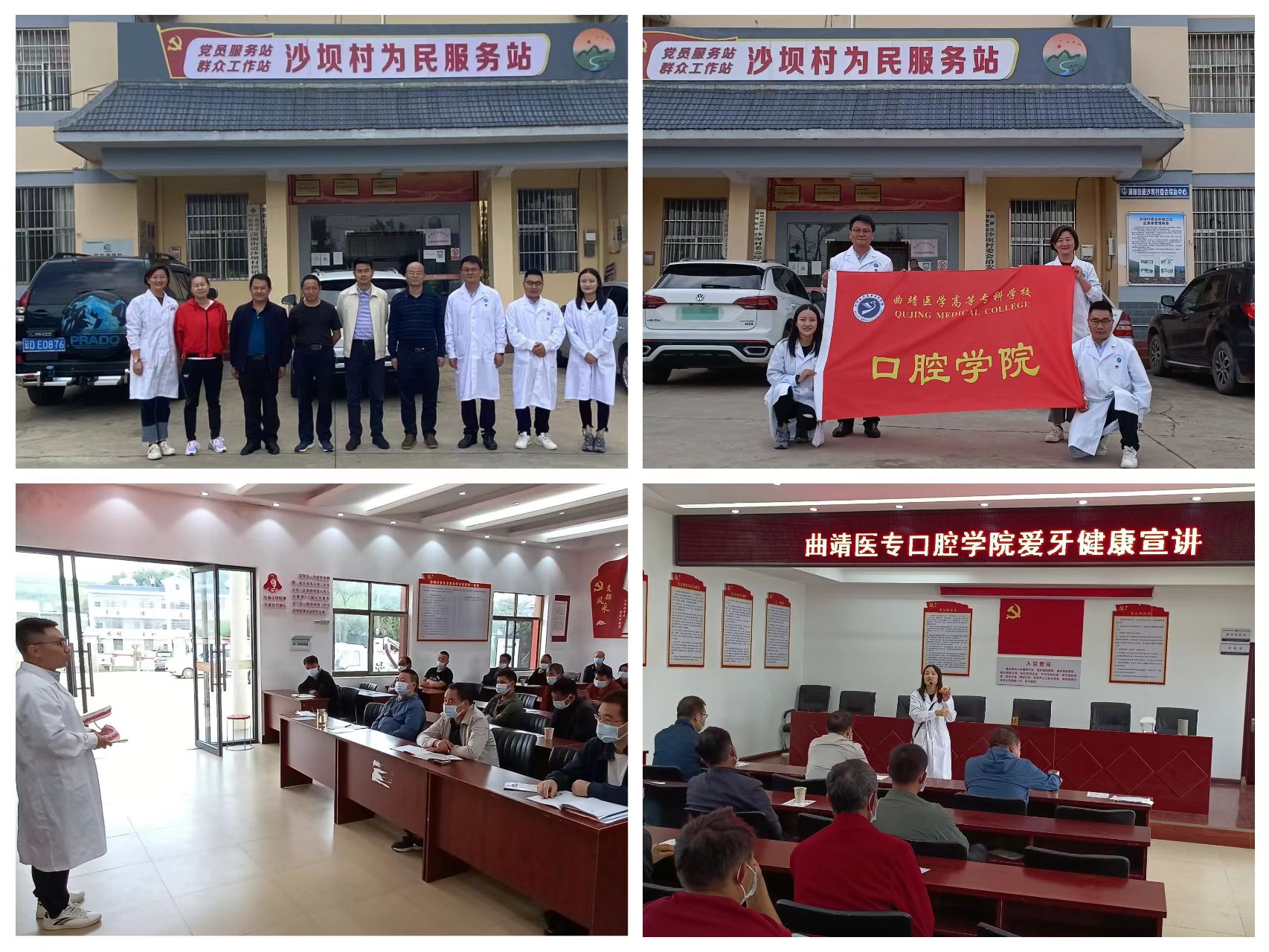9月22日上午,由曲靖市科技局主办、学校口腔学院、曲靖市妇女儿童中心共同参与“科技下乡”服务活动,深入到潇湘街道沙坝村委会开展基层卫生健康服务,为40多名村民们开展口腔健康科普与义诊活动,普及刷牙、洁牙和龋病防治的知识,并为村民们开展口腔医疗服务,耐心解答村民关于义齿修复与牙齿矫正方面的咨询,为沙坝村留守儿童和老人发放牙膏、牙刷等口腔清洁用品。